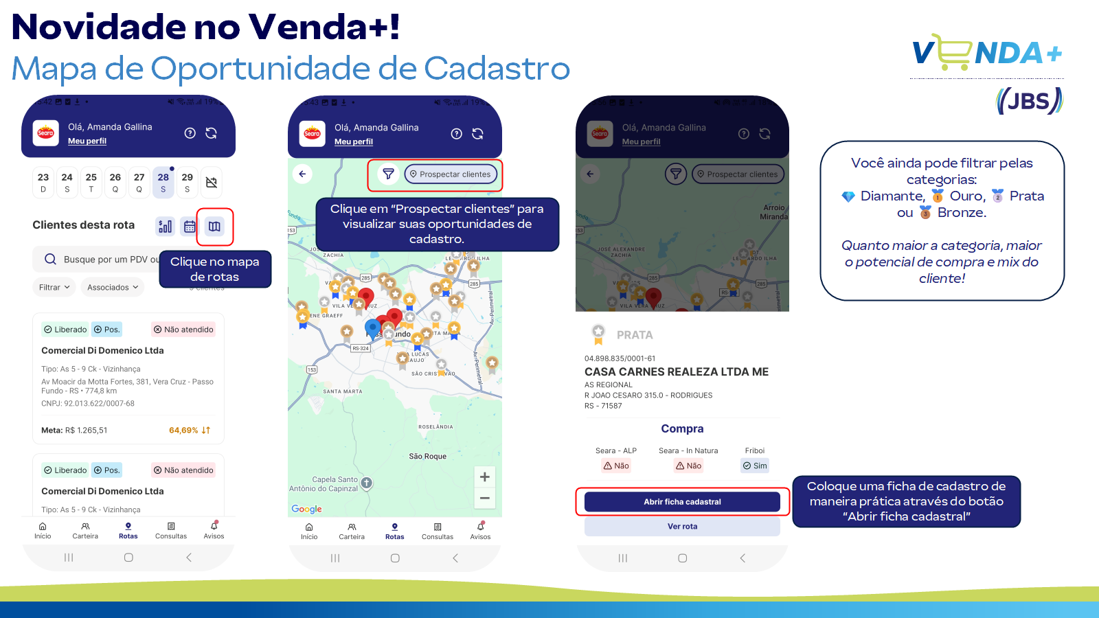 Com essa novidade, você ganha mais praticidade para identificar oportunidades, ampliar sua carteira de clientes e otimizar o tempo em campo, tudo diretamente pelo aplicativo. Mais facilidade para vender mais e vender melhor!