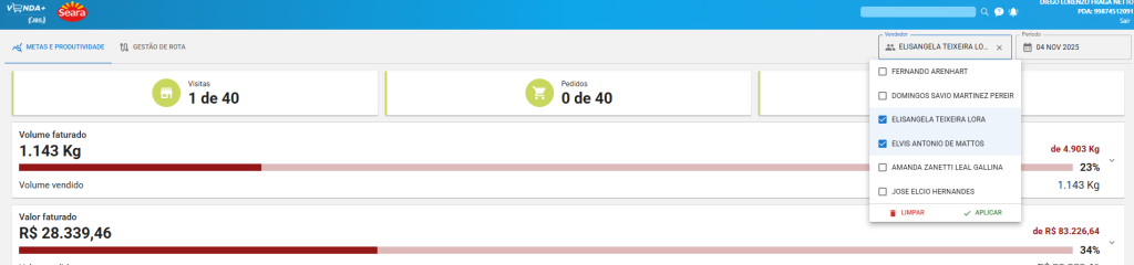 • Vendedor: escolha o nome do vendedor/vendedores que deseja consultar.